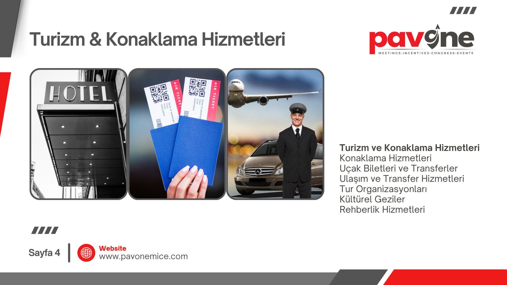 Yurt içi ve yurt dışı organizasyonlarınızda planlamadan uygulamaya kadar her aşamada yanınızdayız. Katılımcı yönetimi, konaklama, ulaşım, teknik altyapı ve yaratıcı etkinlik tasarımlarıyla kusursuz deneyimler sunuyoruz.